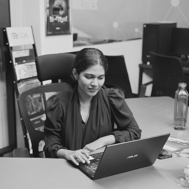 Hi! I’m Hiba Rafeeque, a 21-year-old freelance digital marketer based in Calicut. Over the years, I’ve honed my skills in digital marketing services, including social media marketing, digital ad strategies, and brand storytelling, through hands-on experience as a student at CDA Academy and an internship with Quad Cubes.